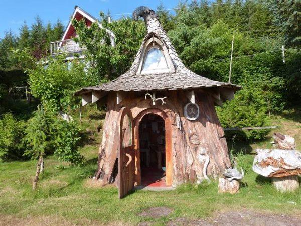 Sembra uscita da un libro di favole, una casa in stile hobbit ricavata dal tronco senza vita di un albero.