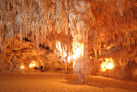 In alto, man mano i vostri occhi si abituano all'oscurità, vi accorgete che il soffitto è trapuntato da piccole stalattiti, ma che tutta la sala è uno spettacolo di speleotemi, con colonne, cortine e pilastri: una vera cattedrale naturale.